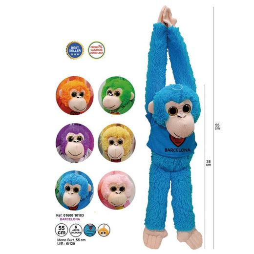 Suave, tierno y lleno de encanto, MONO SURT 55CM BARCELONA de APEX es el peluche que todo niño quiere tener cerca. Su diseño cuidado y sus materiales de primera lo hacen ideal como regalo.
